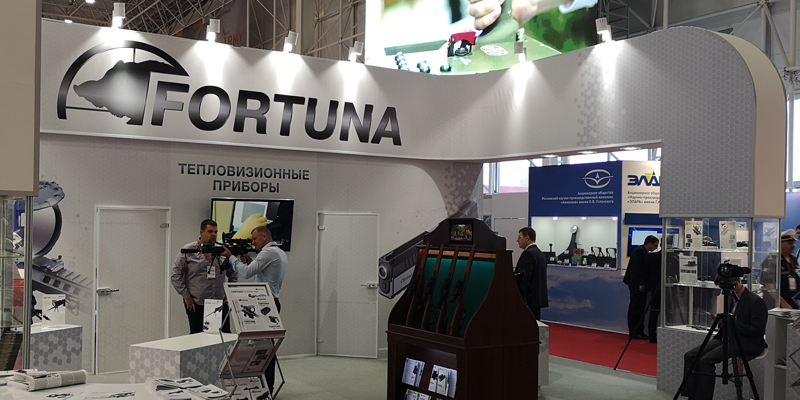 В экспозиции представлены не только тепловизионные прицелы и тепловизоры для армии, но и целый ряд приборов широкого применения. Это монокуляры для ночного наблюдения, портативные очки, закрепляющиеся на шлеме, бинокли. Некоторые модели можно проверить «в деле» — они установлены на штативах, и посетители могут оценить их качество «своими глазами». Монокуляры Fortuna снабжены огромным количеством современных опций. Они способны работать в автономном режиме, позволяют записывать видео, отличаются бесшумной калибровкой, защищены прочным металлическим корпусом.